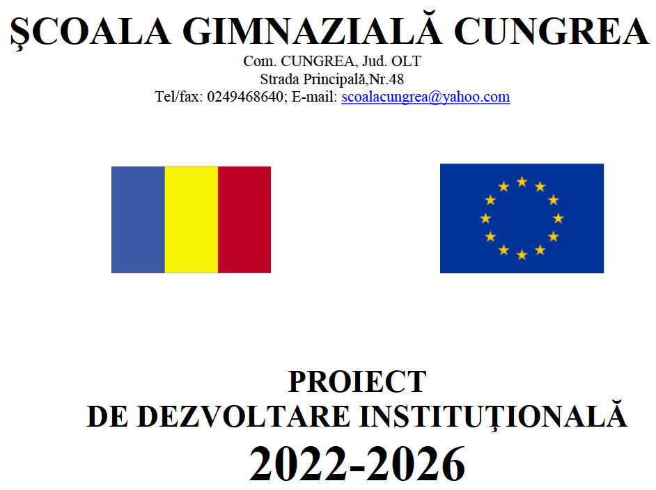 Proiectul de dezvoltare instituţională al Şcolii Gimnaziale Cungrea, pentru perioada 2022-2026 s-a realizat plecând de la o radiografie complexă şi … Continue reading PROIECT DE DEZVOLTARE INSTITUŢIONALĂ 2022-2026